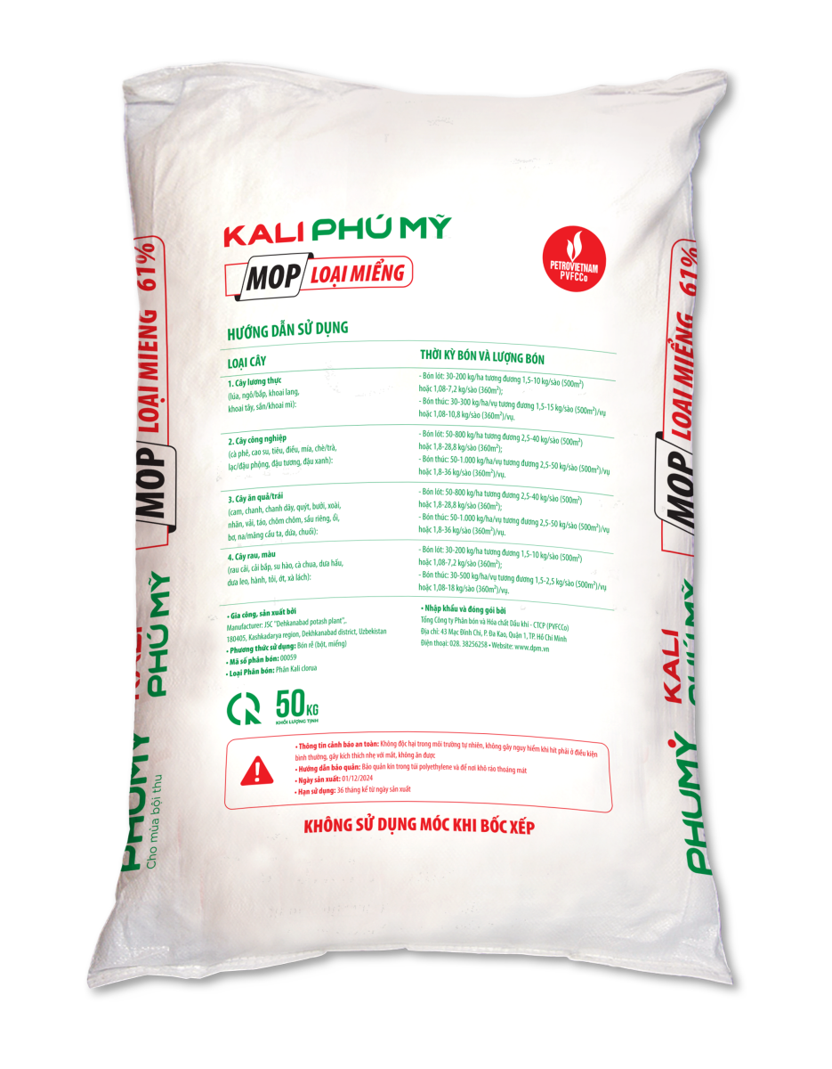 Kali Phú Mỹ có thể dùng để bón riêng lẻ hoặc phối hợp với các loại phân bón khác như đạm, DAP, NPK... Sản phẩm phân bón Kali giúp thân cây vững chắc, tránh đổ gãy, sinh trưởng tốt ngay cả trong giai đoạn thời tiết bất lợi, tăng cường khả năng phòng chống sâu bọ.