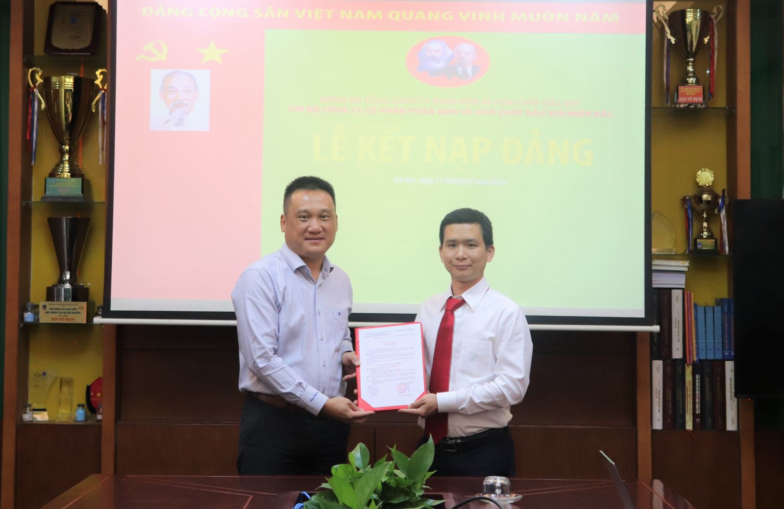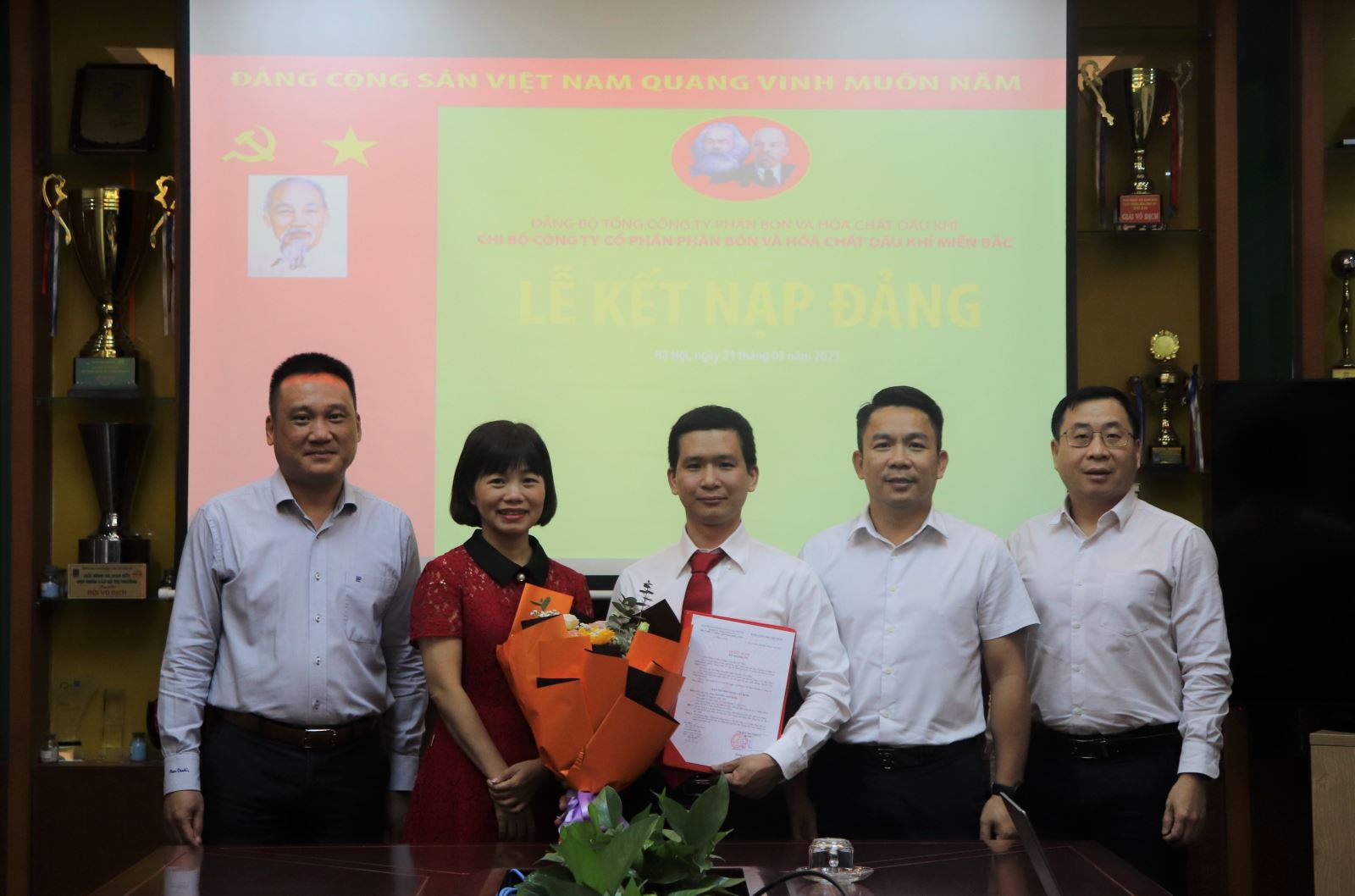 Chiều ngày 21/3/2023 tại Hà Nội, Chi bộ Công ty Cổ phần Phân bón và Hóa chất Dầu khí miền Bắc long trọng tổ chức Lễ kết nạp đảng viên mới cho quần chúng ưu tú Nguyễn Tiến Hưng - Chuyên viên Phòng Tài chính Kế toán.