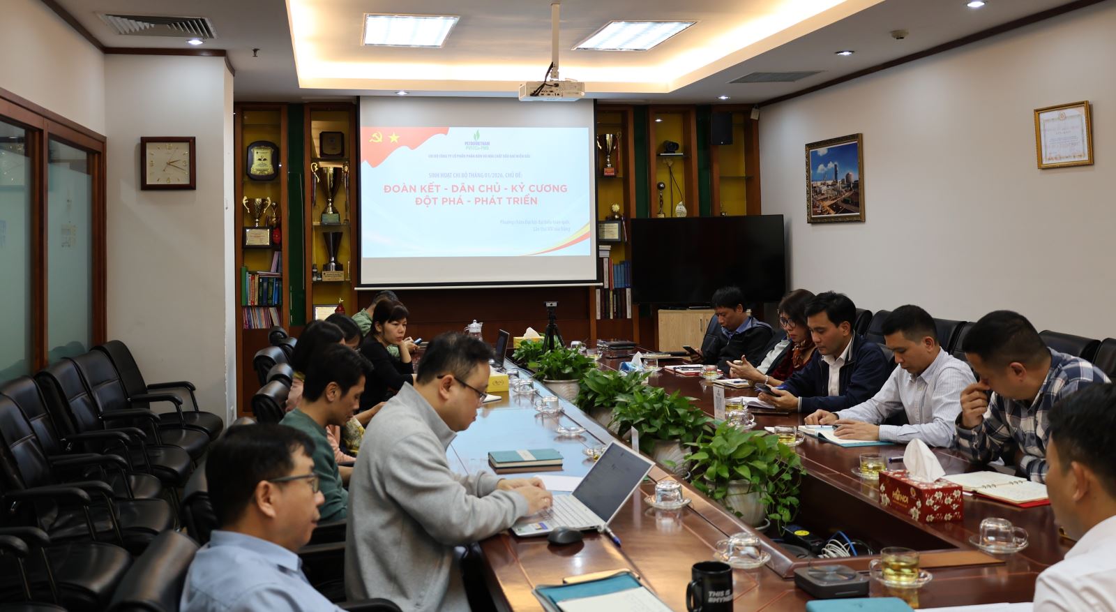 Chiều ngày 05/01/2026, tại Văn phòng Công ty, Chi bộ PVFCCo-PMB đã tổ chức Sinh hoạt Chi bộ định kỳ tháng 1 năm 2026 với chủ đề: “Đoàn kết - Dân chủ - Kỷ cương - Đột phá - Phát triển”. Các nội dung trong buổi sinh hoạt gồm: