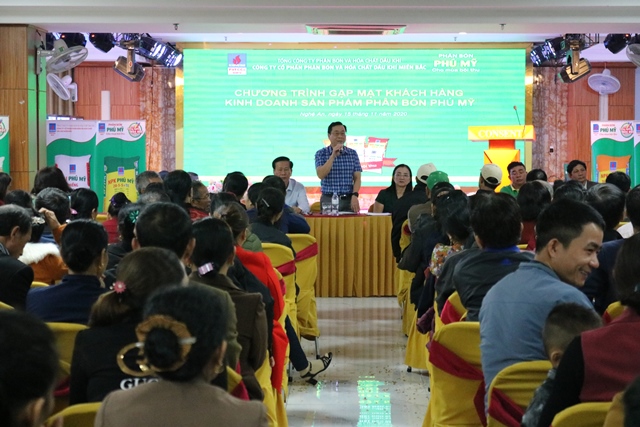 Phát biểu tại hội nghị, ông Nguyễn Quang Đoàn - Phó Giám đốc Công ty gửi lời tri ân, cảm ơn sự ủng hộ, hợp tác thiết thực của các khách hàng trong những năm vừa qua đã phát triển thương hiệu cũng như nâng cao thị phần phân bón Phú Mỹ tại các huyện Đô Lương, Anh Sơn, Con Cuông và Yên Thành nói riêng và toàn tỉnh Nghệ An nói chung, đặc biệt là năm 2020, trong bối cảnh hết sức bất lợi của dịch bệnh Covid-19, nắng nóng khô hạn và lũ lụt nghiêm trọng đã ảnh hưởng bất lợi đến sản xuất nông nghiệp và trực tiếp ảnh hưởng đến quá trình kinh doanh mặt hàng phân bón, trong đó có phân bón Phú Mỹ. Đại diện PVFCCo North, Nhà phân phối cùng chia sẻ khó khăn, tháo gỡ vướng mắc và cam kết nâng cao chất lượng dịch vụ hàng hóa, đa dạng chủng loại sản phẩm phân bón Phú Mỹ để ngày càng phù hợp với điều kiện thổ nhưỡng cây trồng tại khu vực, nâng cao hiệu quả canh tác cho bà con nông dân và đáp ứng tốt nhu cầu thị trường tại khu vực.