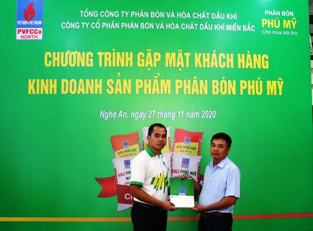 Tiếp nối thành công của chuỗi chương trình “Gặp mặt khách hàng kinh doanh sản phẩm phân bón Phú Mỹ” tại huyện Đô Lương ngày 15/11 /2020 và huyện Yên Thành ngày 17/11/2020. Ngày 27/11/2020, Công ty Cổ phần Phân bón và Hóa chất Dầu khí miền Bắc (PVFCCo North) phối hợp với Nhà phân phối Công ty TNHH Việt Mỹ tiếp tục tổ chức thành công chương trình “Gặp mặt khách hàng kinh doanh sản phẩm phân bón Phú Mỹ” tại huyện Thanh Chương, tỉnh Nghệ An.