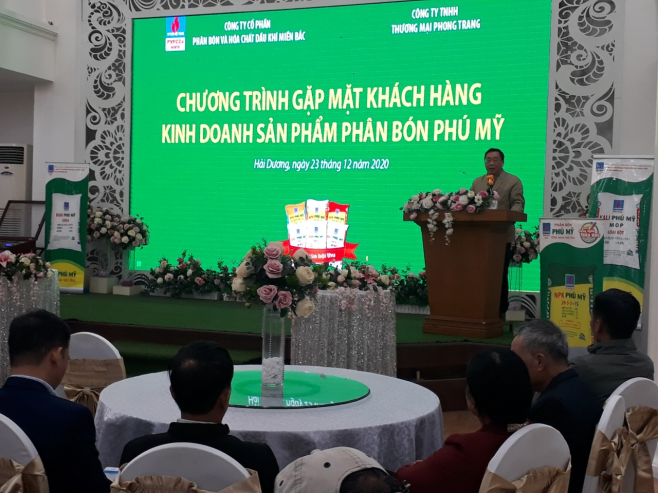 Khép lại chuỗi chương trình “Gặp mặt khách hàng kinh doanh sản phẩm phân bón Phú Mỹ”, trong các ngày từ 21 - 29/12/2020, PVFCCo North kết hợp cùng với các Nhà phân phối Công ty TNHH Khải Linh, Công ty TNHH Thương mại Phong Trang, XN Kinh doanh Lương thực Tổng hợp đường 8, Công ty TNHH Vật tư Nông nghiệp, Xây dựng Anh Thái, Công ty Cổ phần Thương mại Thiệu Yên Thanh Hóa tại Hưng Yên, Hải Dương, Hà Tĩnh, Hà Nội, Thanh Hóa.