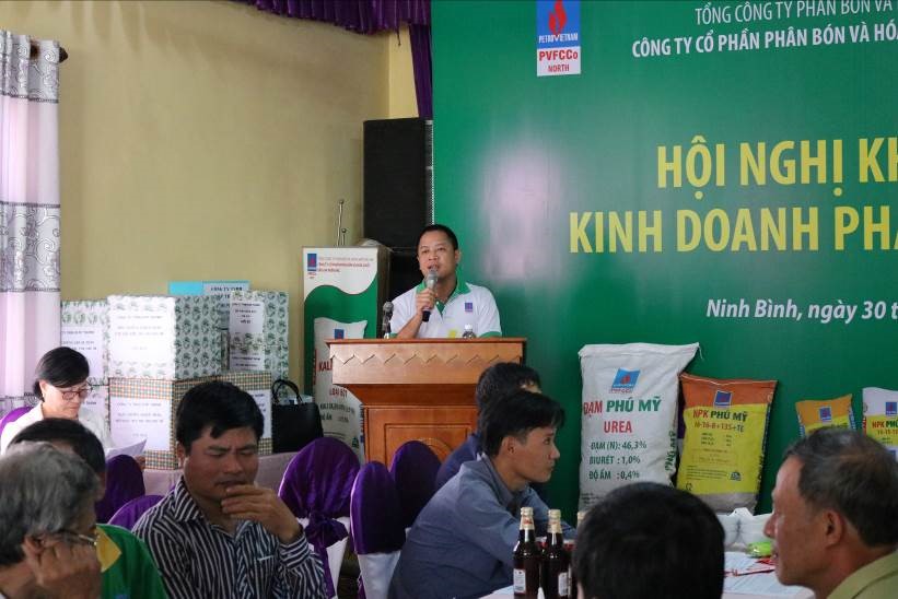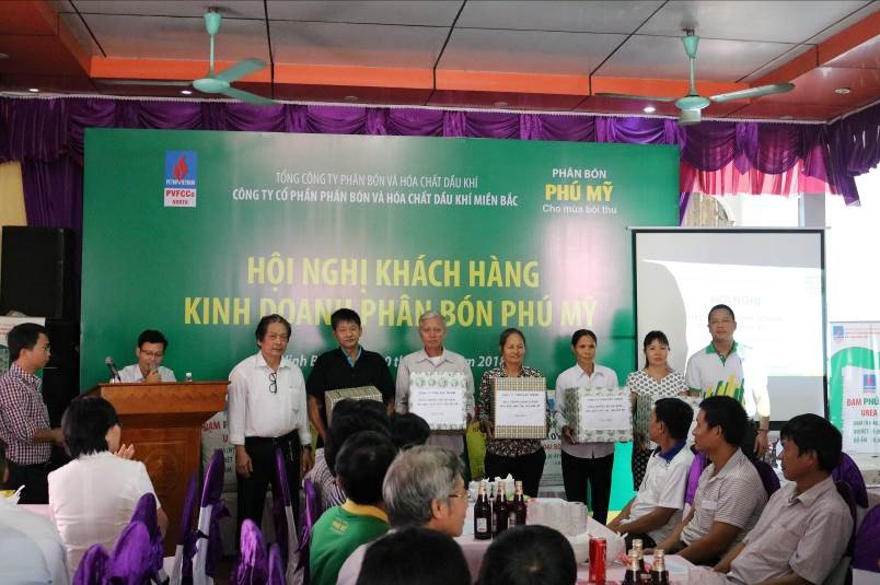 Tới tham dự hội nghị có đại diện PVFCCo North, đại diện Nhà phân phối và 60 khách hàng là đại diện cửa hàng kinh doanh sản phẩm phân bón Phú Mỹ tại địa phương.