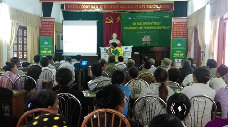 Với mục đích giới thiệu sản phẩm NPK Phú Mỹ và quảng bá hình ảnh phân bón Phú Mỹ tại khu vực Hà Nội, ngày 02/11/2016 PVFCCo North phối hợp với Công ty Cổ phần Phùng Hưng tổ chức thành công chuỗi “Hội thảo tư vấn kỹ thuật và giới thiệu sản phẩm phân bón Phú Mỹ” tại hai xã Vân Nam và xã Vân Hà, huyện Phúc Thọ, Hà Nội. Tham gia hội thảo có đại diện PVFCCo North, đại diện Công ty Cổ phần Phùng Hưng và 100 khách mời là các cán bộ nông nghiệp, Hợp tác xã, Nhà phân phối cấp 2 và các Hộ nông dân tiêu biểu tại khu vực.