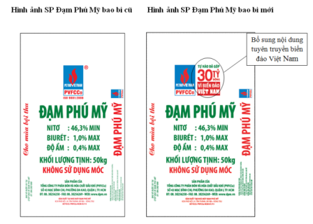 Các sản phẩm phân bón Phú Mỹ của Tổng Công ty Phân bón và Hóa chất Dầu khí sẽ được in bổ sung nội dung tuyên truyền tại vị trí cạnh logo PVFCCo trên bao bì sản phẩm