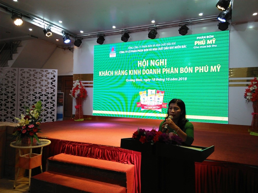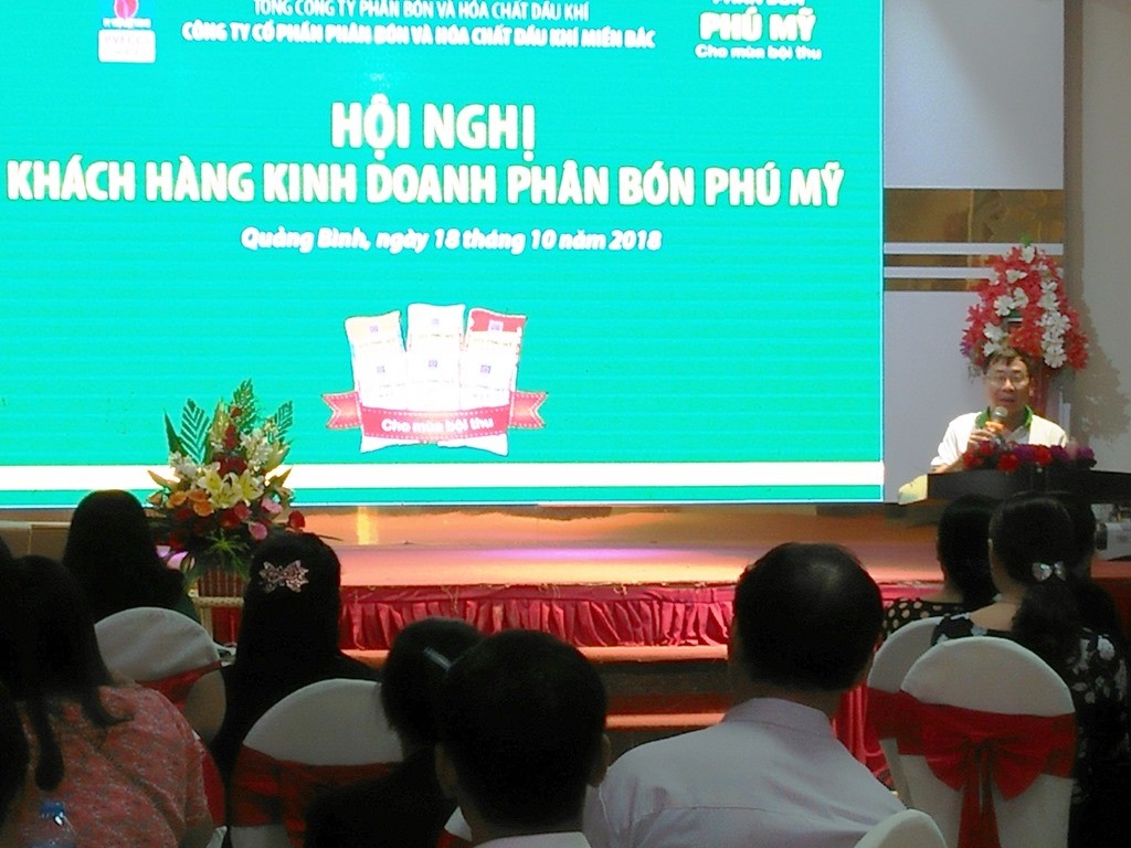 Trong 2 ngày 18/10/2018 và ngày 19/10/2018, PVFCCo North phối hợp với Nhà phân phối Công ty TNHH TM TH Tri Lịch và Xí nghiệp Kinh doanh Lương thực Tổng hợp Đường 8 tổ chức thành công các chương trình “Gặp mặt khách hàng kinh doanh phân bón Phú Mỹ” tại Quảng Bình và Hà Tĩnh.