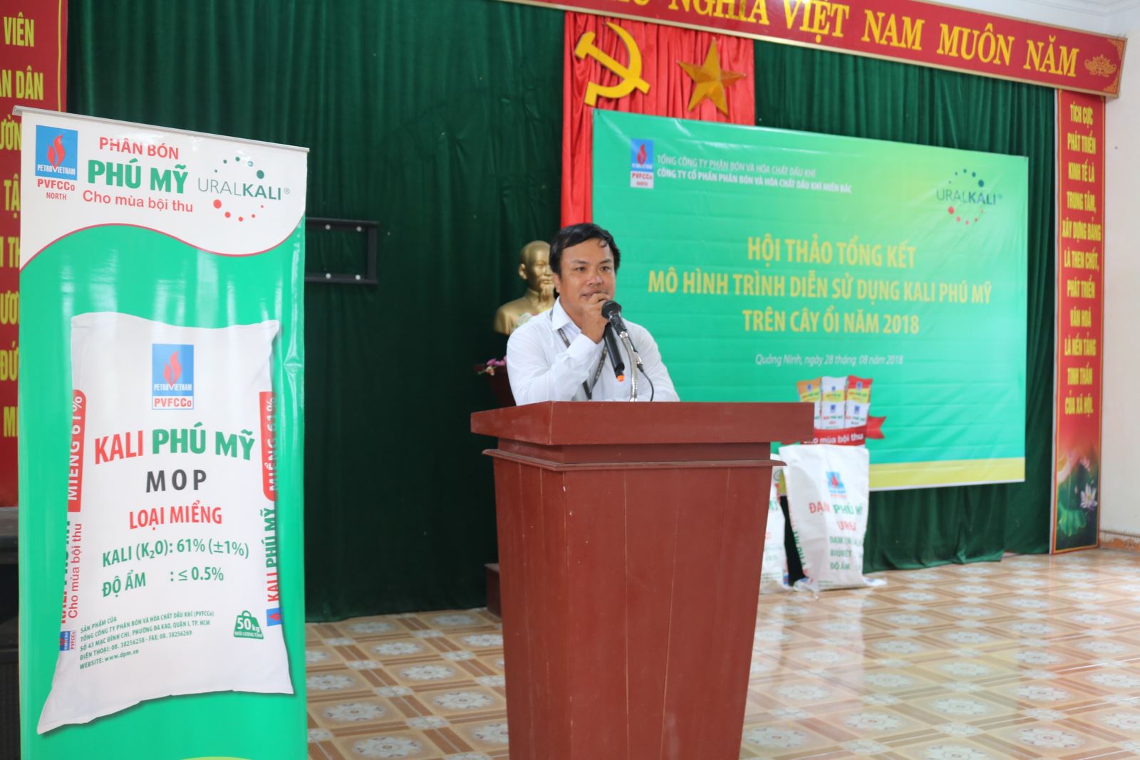 Ngày 28/8/2018 Công ty Cổ phần Phân bón và Hóa chất Dầu khí miền Bắc (PVFCCo North) cùng Trung tâm Tư vấn, Ứng dụng, Phát triển Khoa học Nông nghiệp và Môi trường tỉnh Thái Bình phối hợp với Hội nông dân xã Sơn Dương, huyện Hoành Bồ, tỉnh Quảng Ninh tổ chức “Hội thảo tổng kết mô hình trình diễn sử dụng phân bón Phú Mỹ trên cây ổi năm 2018”. Tham dự chương trình, có đại diện Tổng công ty Phân bón và Hóa chất Dầu khí - CTCP, đại diện PVFCCo North, đại diện Nhà phân phối cấp 1 - Công ty Cổ phần Thương mại Thành Nam, đại diện Hội nông dân xã cùng lãnh đạo UBND và bà con nông dân trong vùng trực tiếp sử dụng phân bón Phú Mỹ của xã Sơn Dương.
