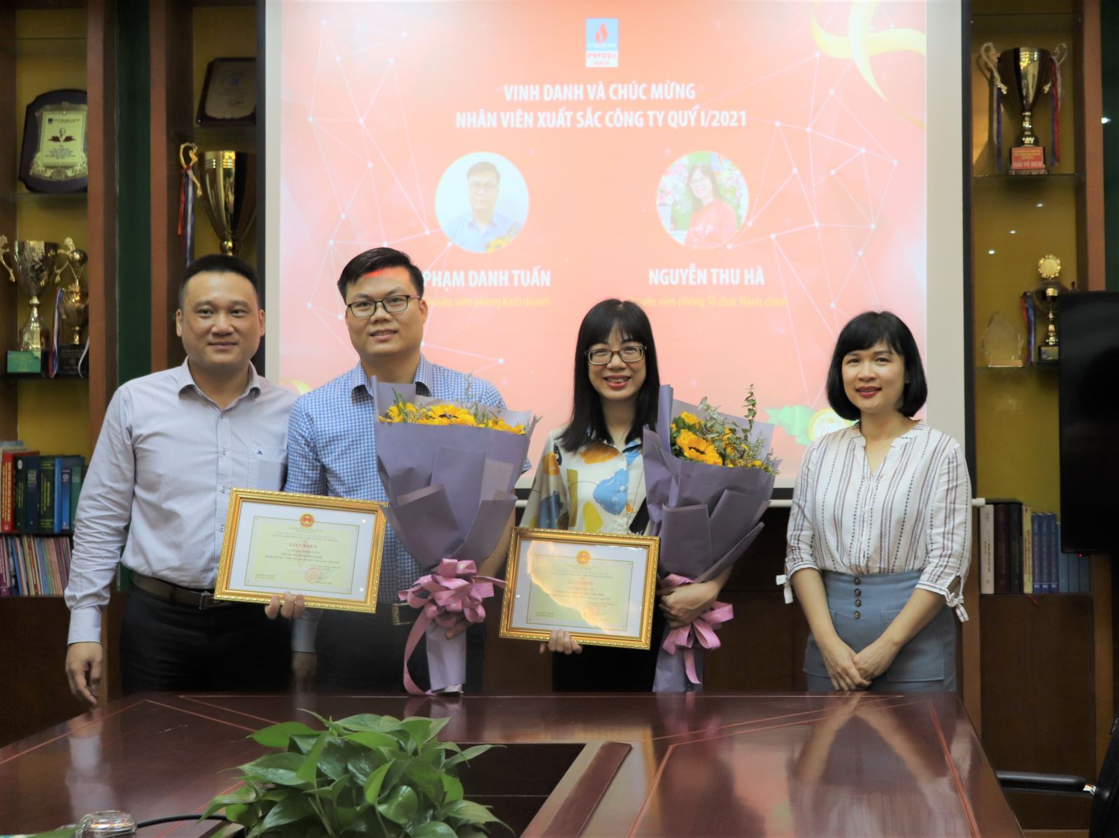 Vượt qua vòng bỏ phiếu của toàn Công ty, giải Nhân viên xuất sắc Quý I/2021 đã được trao cho anh Phạm Danh Tuấn - Chuyên viên phòng Kinh doanh - đạt giải Nhất và chị Nguyễn Thu Hà - chuyên viên phòng TCHC - đạt giải Nhì. Đây là sự ghi nhận xứng đáng của Công ty giành cho người lao động đã có nỗ lực, phấn đấu không ngừng để hoàn thành công việc được giao với chất lượng và hiệu quả cao nhất.