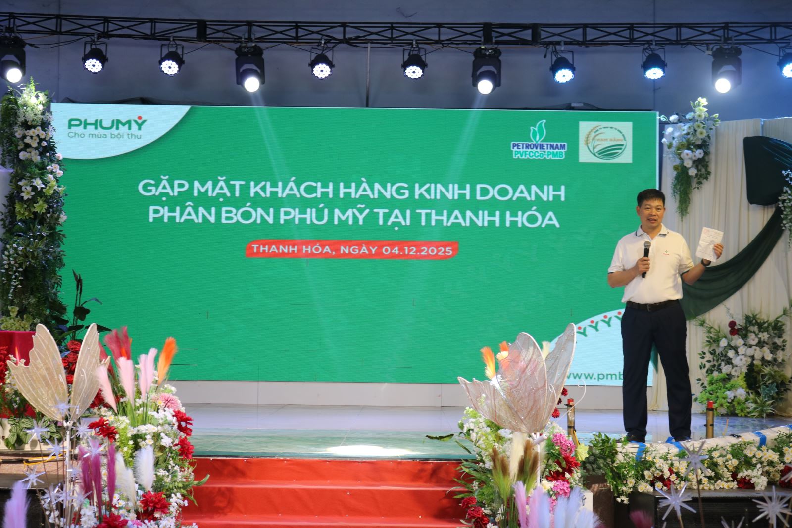 Tiếp theo chuỗi chương trình “Gặp mặt khách hàng kinh doanh phân bón Phú Mỹ”, từ ngày 02 - 05/12/2025 tại các tỉnh Ninh Bình và Thanh Hóa, Công ty Cổ phần Phân bón và Hóa chất Dầu khí miền Bắc (PVFCCo - PMB) phối hợp với các Nhà phân phối Công ty TNHH Bằng Tuyên, Công ty TNHH VTNN Nam Hằng và Công ty TNHH Thương Mại Ngọc Nhâm tổ chức chuỗi chương trình “Gặp mặt khách hàng kinh doanh phân bón Phú Mỹ” năm 2025.