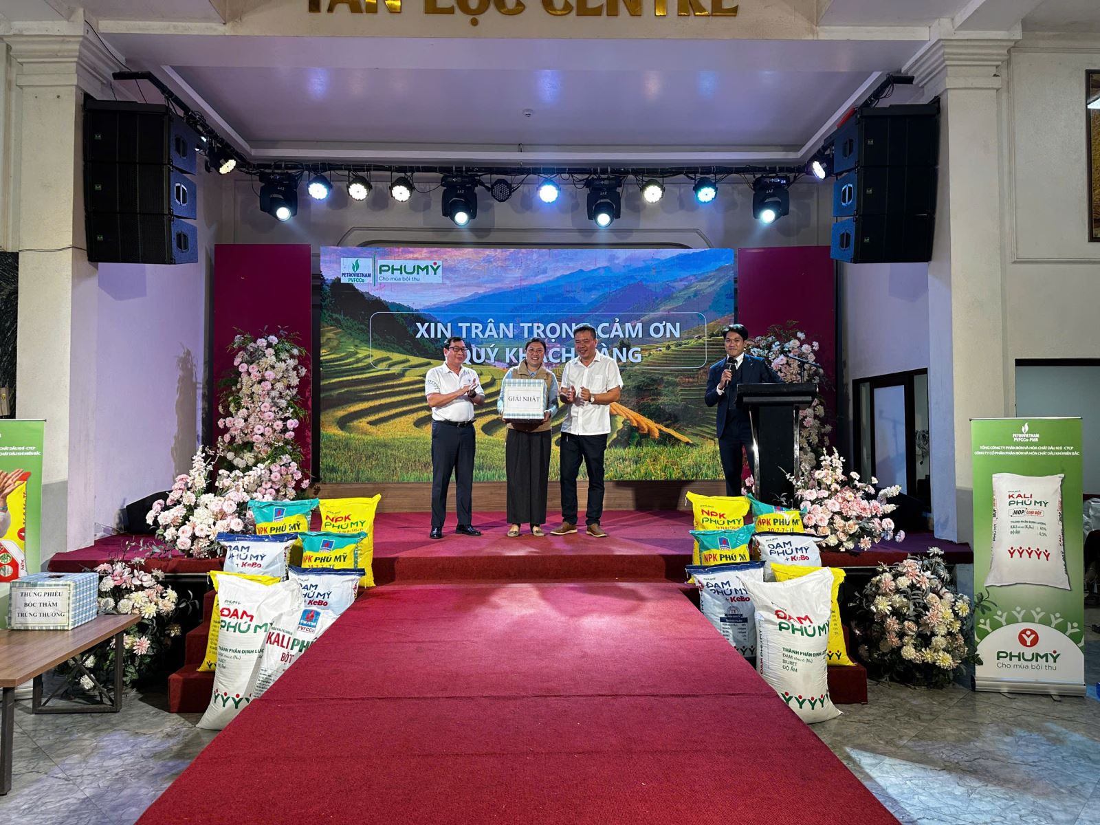 Cũng trong khuôn khổ sự kiện, đại diện PVFCCo - PMB đã giới thiệu đến khách hàng chương trình quét mã QR code trúng thưởng khi mua sản phẩm NPK Phú Mỹ và chương trình tích điểm nhận quà qua app PHUMY. Đồng thời vinh danh và trao tặng những phần quà đặc biệt đến các khách hàng tiêu biểu có nhiều đóng góp trong việc tiêu thụ sản phẩm NPK Phú Mỹ.