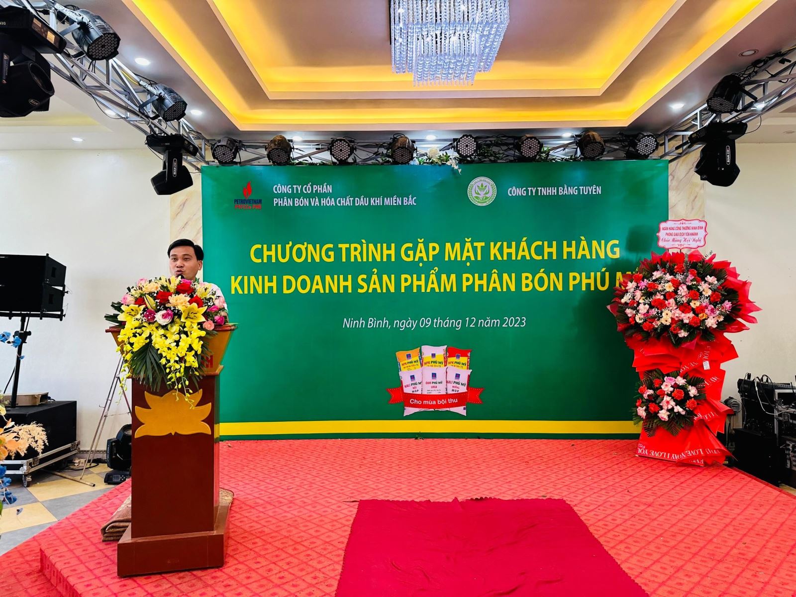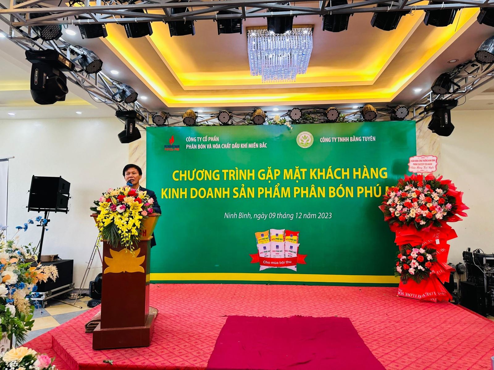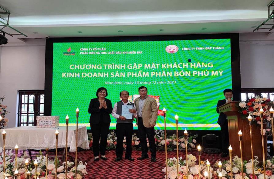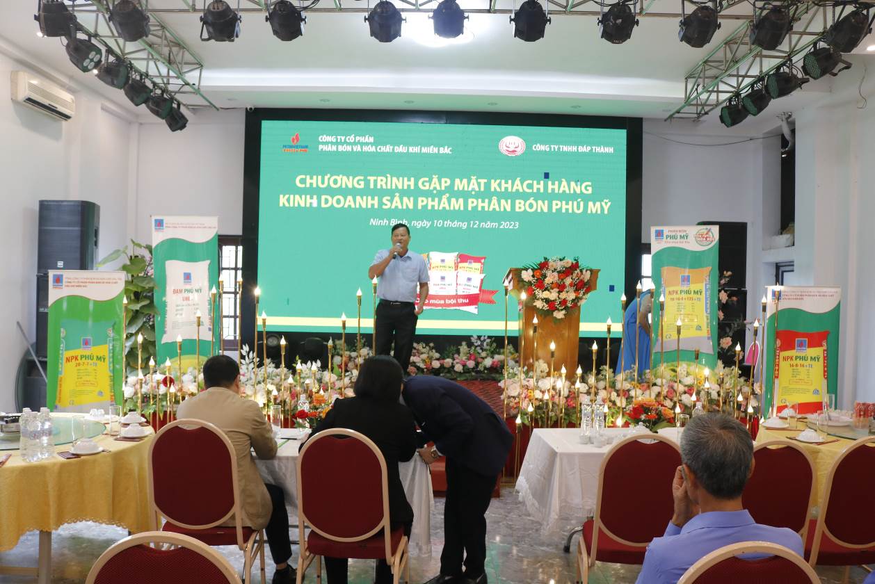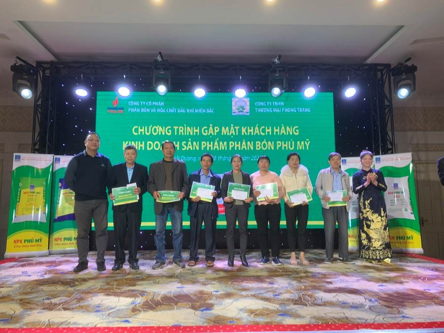 Từ ngày 08 - 11/12/2023, PVFCCo - PMB phối hợp với các Nhà phân phối Công ty TNHH TM Phong Trang (Hải Dương), Công ty TNHH Bằng Tuyên (Ninh Bình), Công ty TNHH Đáp Thành (Ninh Bình) và Công ty TNHH Văn Hường (Hà Nam) tổ chức chuỗi chương trình “Gặp mặt khách hàng kinh doanh sản phẩm phân bón Phú Mỹ” năm 2023.
