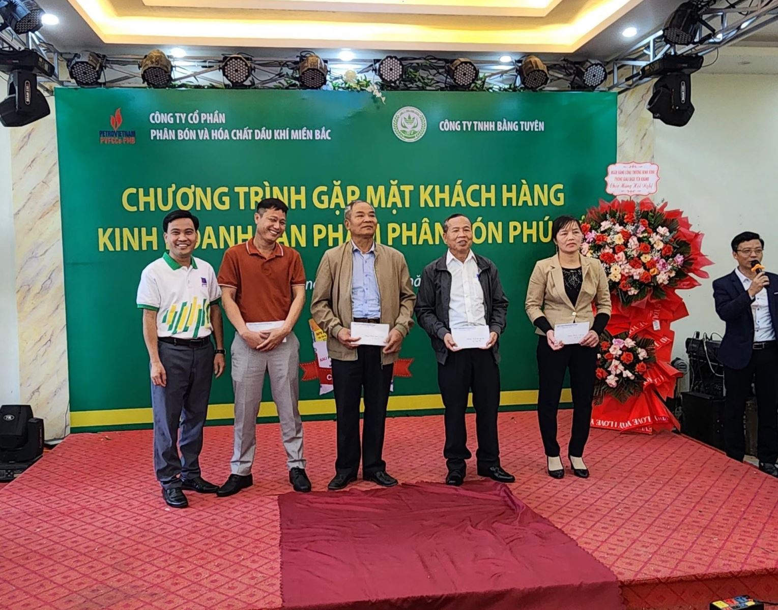 Tham dự chương trình có ông Nguyễn Quang Đoàn - Phó giám đốc PVFCCo - PMB; ông Nguyễn Đình Đông - Giám đốc công ty TNHH TM Phong Trang; ông Nguyễn Văn Bằng - Giám đốc Công ty TNHH Bằng Tuyên; bà Nguyễn Thị Đắc - Giám đốc Công ty TNHH Đáp Thành, bà Vũ Thị Hồng - Giám đốc Công ty TNHH Văn Hường cùng gần 600 khách mời là đại diện các cửa hàng kinh doanh phân bón Phú Mỹ tại địa bàn tỉnh Hải Dương, Ninh Bình và Hà Nam.