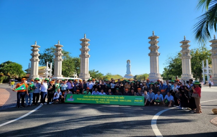 Nhằm tri ân các khách hàng tiêu biểu, đóng góp tích cực trong việc tiêu thụ các sản phẩm phân bón Phú Mỹ, đặc biệt là sản phẩm NPK Phú Mỹ vụ Đông năm 2023. Trong các ngày từ 07/12 đến ngày 11/12/2023, PVFCCo - PMB tổ chức thành công chương trình tham quan các địa danh nổi tiếng tại đảo Hải Nam, Trung Quốc