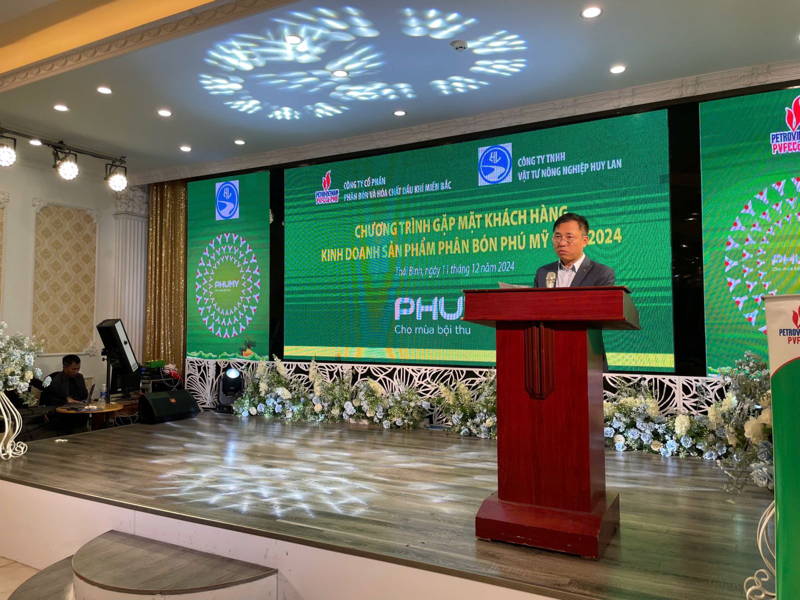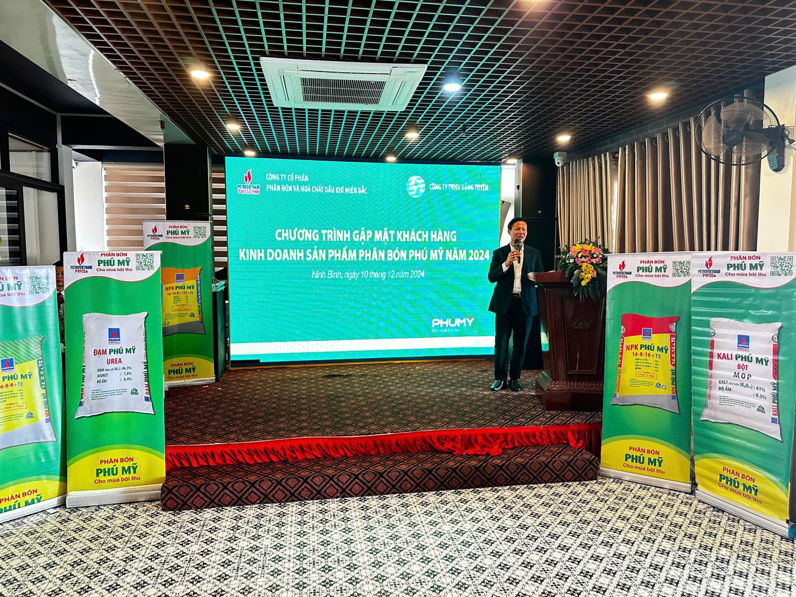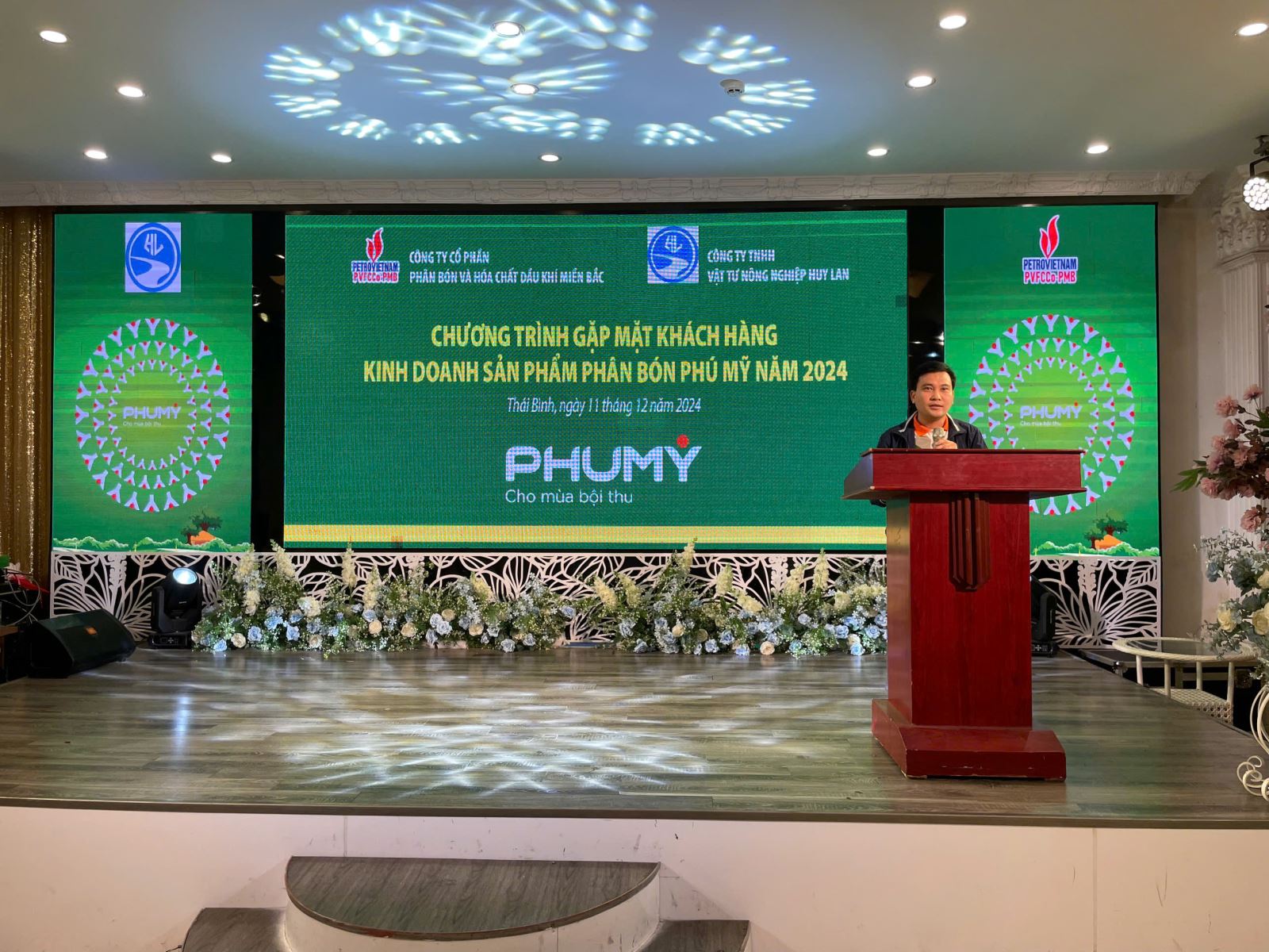 Từ ngày 10 - 11/12/2024, PVFCCo - PMB phối hợp với Nhà phân phối Công ty TNHH Bằng Tuyên, Công ty TNHH VTNN Huy Lan tổ chức thành công chương trình “Gặp mặt khách hàng kinh doanh sản phẩm phân bón Phú Mỹ” năm 2024 tại các tỉnh Ninh Bình và Thái Bình.
