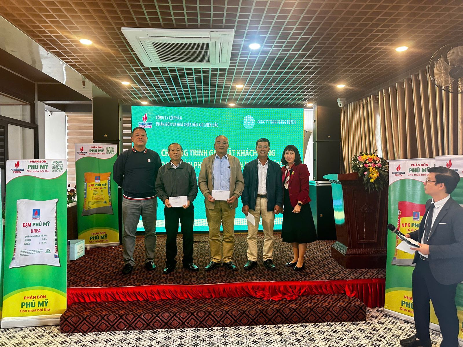 Trong khuôn khổ các chương trình, PVFCCo - PMB đã giới thiệu chi tiết đến khách hàng bộ nhận diện thương hiệu mới “PHUMY” cùng mẫu mã bao bì hoàn toàn mới. Bên cạnh đó, Nhà phân phối Công ty TNHH Bằng Tuyên đã trao tặng những phần quà tri ân cho các khách hàng tiêu biểu có nhiều đóng góp trong việc tiêu thụ sản phẩm NPK Phú Mỹ. Nhà phân phối Công ty TNHH VTNN Huy Lan cũng tặng quà thiết thực và ý nghĩa cho từng khách hàng tham dự.